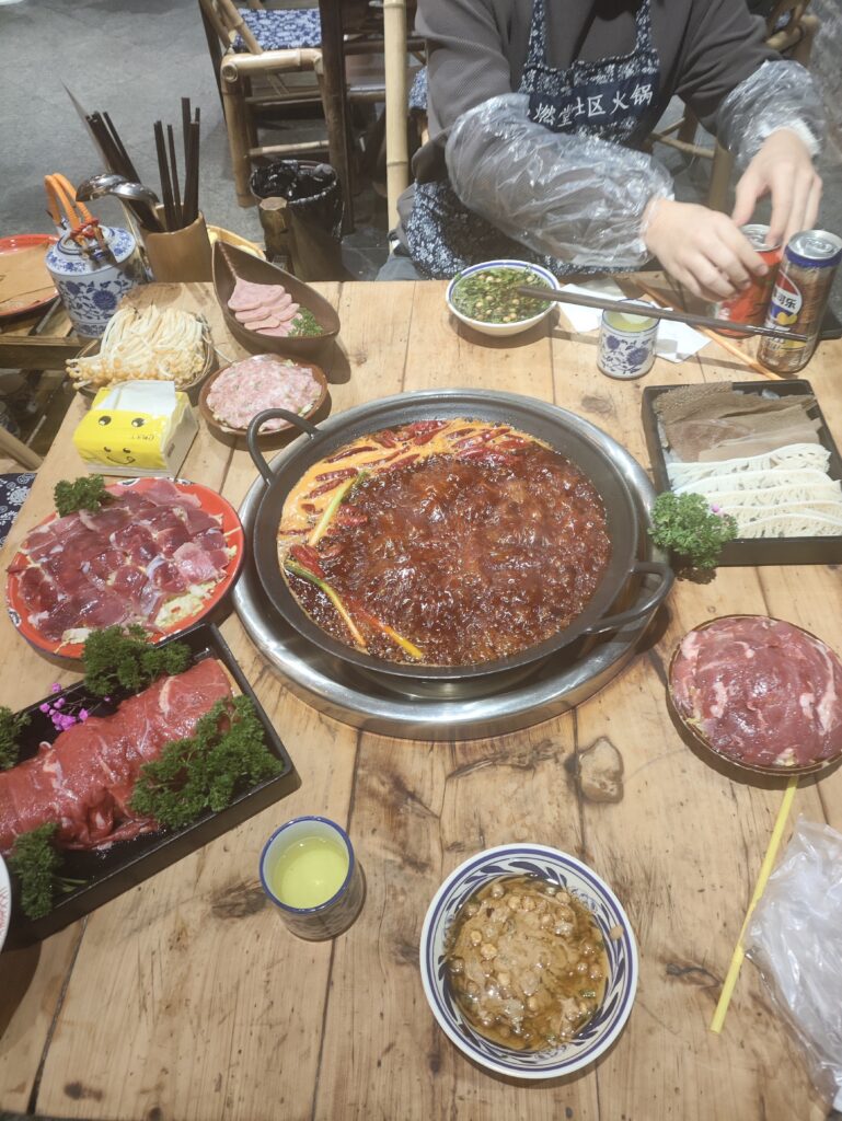 两个人在酒店里休息了半小时,然后去了附近的一个购物广场看鞋子,安踏,阿迪,耐克,他最终也没看上一双。我俩打车去吃火锅,有香油有豌豆也有麻酱,还有蛋炒饭,真好吃。进去之前还在大众点评和抖音上“点亮”,还能拿两瓶汽水,其中一罐是百事生可乐。