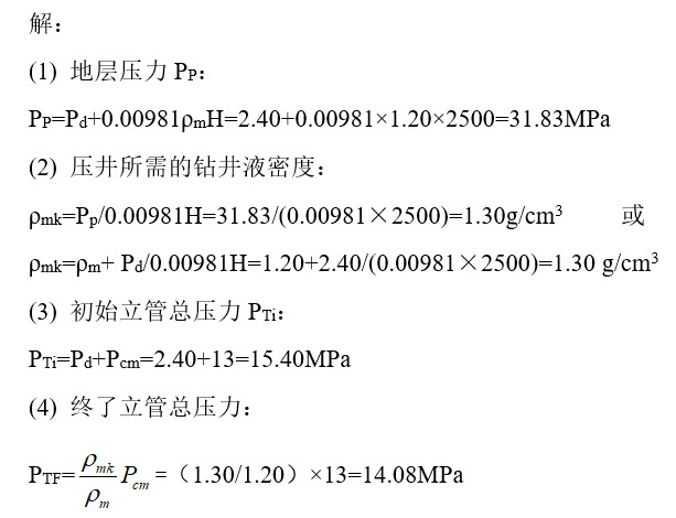 (2) 压井所需的钻井液密度ρmk(单位:g/cm3);